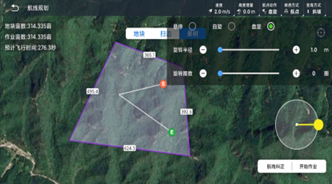 Drone route planning operates in three modes: Plot, Sweep, and Fruiter.